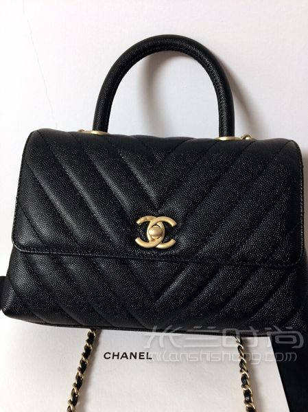 #香奈儿[品牌]##chanel[品牌]#cocohandle 出街最爱的包包 Chanel coco handle18年秋冬新款黑金小号 鱼子酱牛皮v纹山字纹,童星香奈儿同款