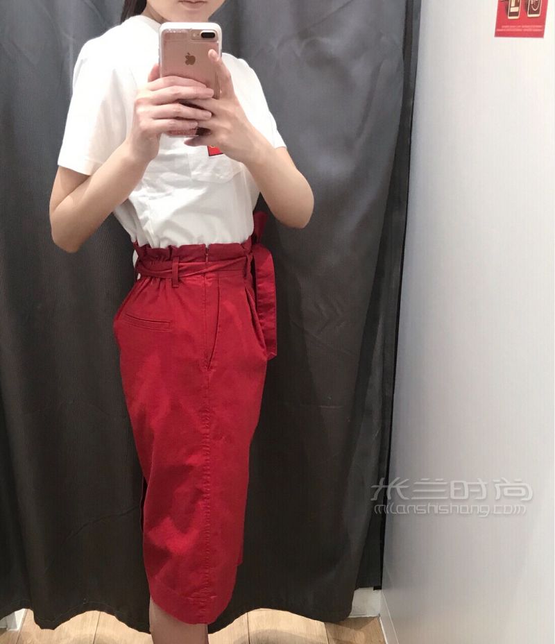 这条红色的裙子我在春节时就种草了 感觉也是这一季比较火的单品。本来觉得有点工装,又有些可爱。但是!穿上正面看还挺好看的,从背后看就是一大妈!!!我绝对没有夸张。侧面和背后看起来就是没有屁股,没有腰线的大妈裙,显得臀很肥,谁穿谁懂!所以这一款大家还是去店里试一下再决定是否购买吧~