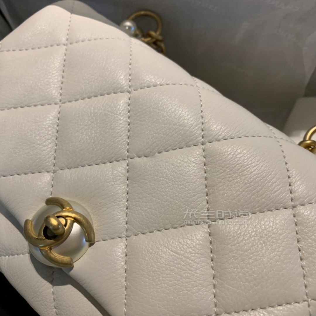 高级的奶白色 加上小女人味的珍珠元素 还有很有质感的软软的小牛皮 里面的空间设计也是非常合理 轻便 还有很重要的一点 肩带长度真的很合适 香奈儿很多包我背着都长了 这款 刚刚好~