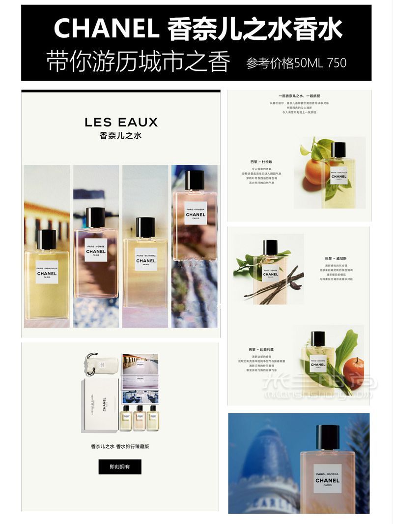 8 香奈儿之水,城市香。这个系列很特别巴黎威尼斯,巴黎比亚利兹,还有巴黎杜维埃。用了城市的感觉来做香水。个人最喜欢威尼斯。东方的调调。