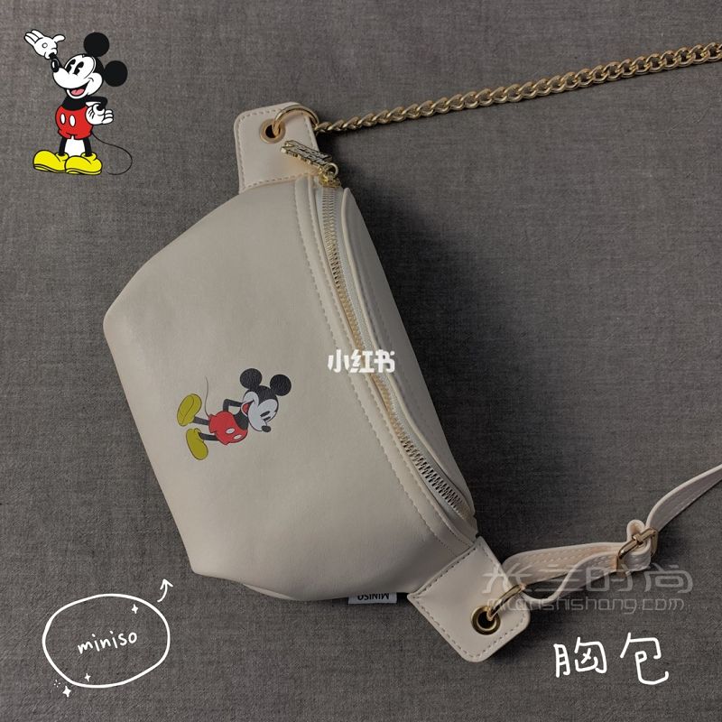 米奇联名款白色胸包,可可爱爱的,我很喜欢,不过皮质一般,容易软塌塌[害羞R]