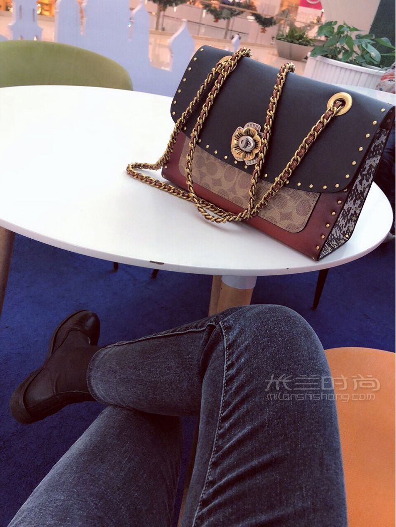 Coach 经典老花涂层搭配铆钉元素加上吸睛的茶玫瑰金属旋锁扣 [吧唧R]