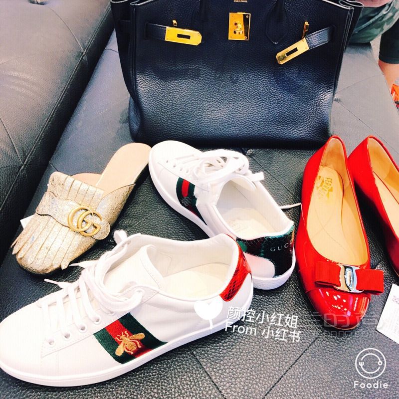 2,Gucci小蜜蜂白鞋4800港币,可以享受8.5折,再会员折扣9折,等于折上折!