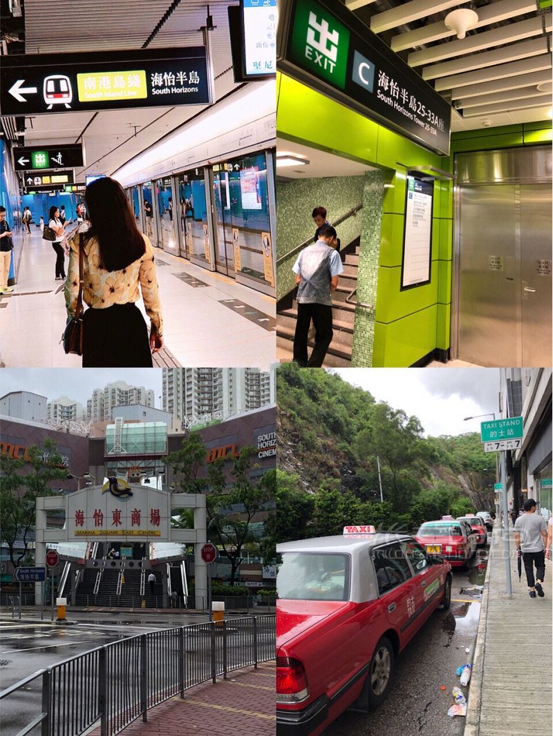 看上去转了很多趟,但实际时方便的,皇岗口岸过深圳关后就有大吧10分钟一趟;大巴到湾仔站下后直行几米马上就有港铁;港铁海怡半岛C出口出来也可以步行10分钟到达, 我们还是选择打车,但地铁口就有很多的士。