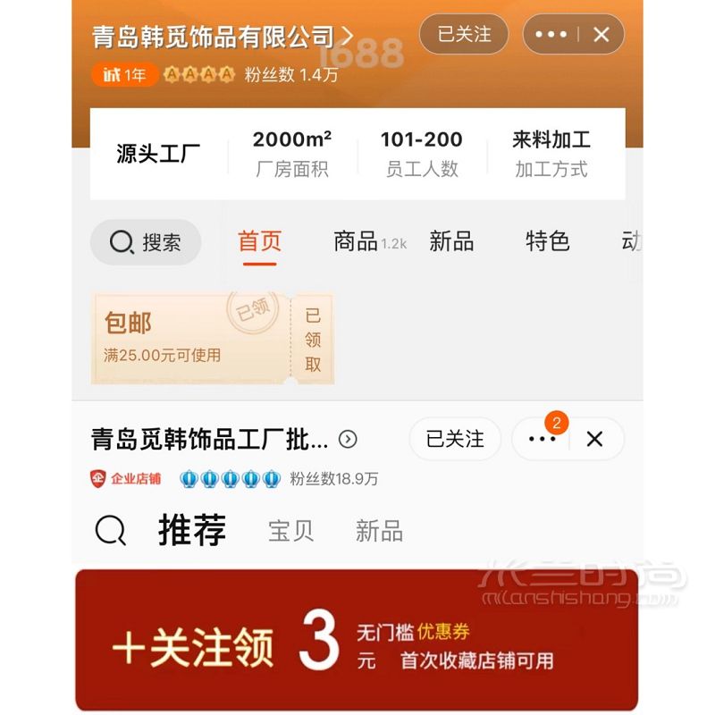 1688店价格更便宜,2件起批,单笔订单满60包邮,新人首单满25包邮;